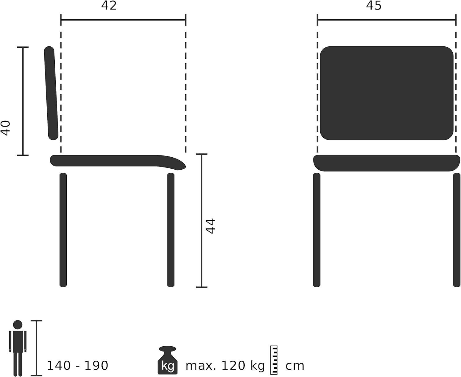 Dimensioni: Altezza totale 81cm, Larghezza e Profondità della seduta 45cm.