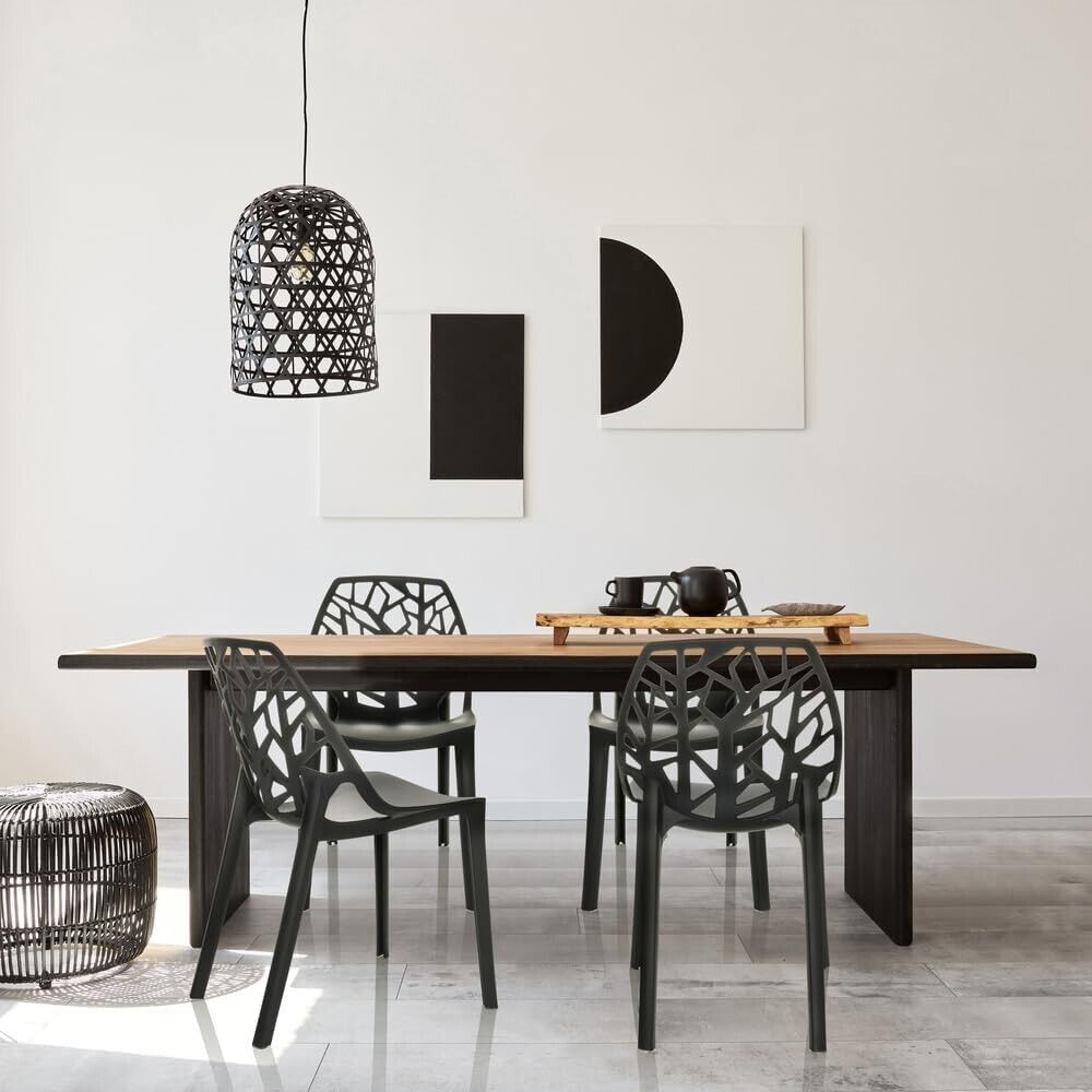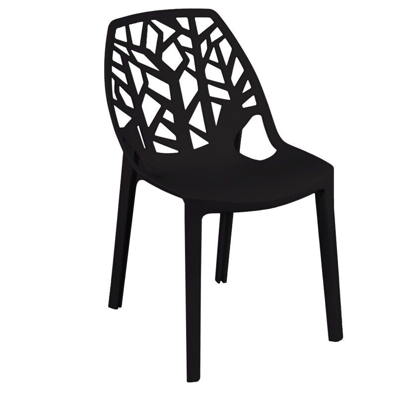 Il motivo traforato sullo schienale, che ricorda i tronchi e i rami degli alberi, aggiunge un tocco di natura e originalità. Questo design unico la rende perfetta per qualsiasi ambiente, dalla sala da pranzo al giardino.