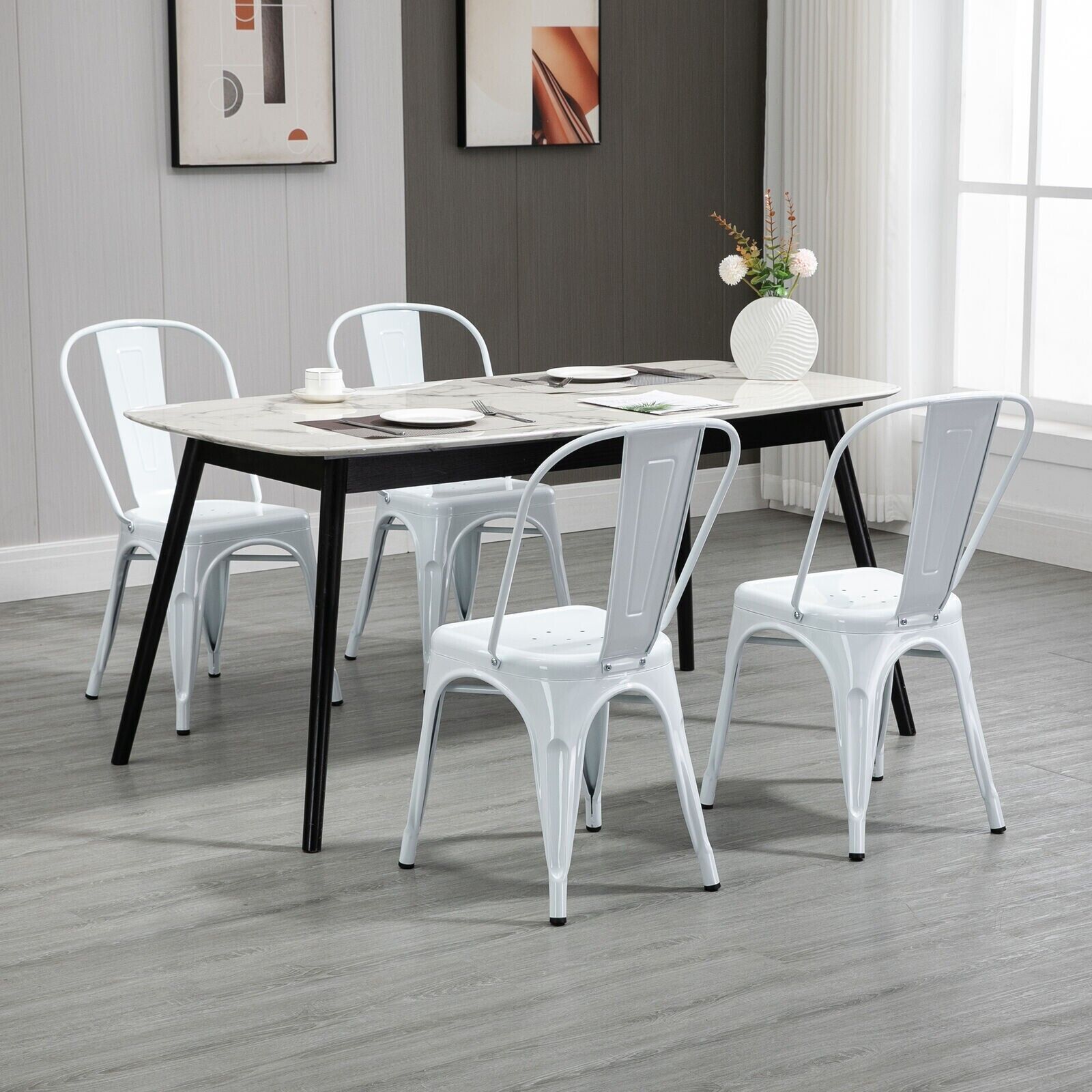 Questa sedia in metallo Bianco lucido rappresenta la perfetta fusione di design, funzionalità e durabilità.