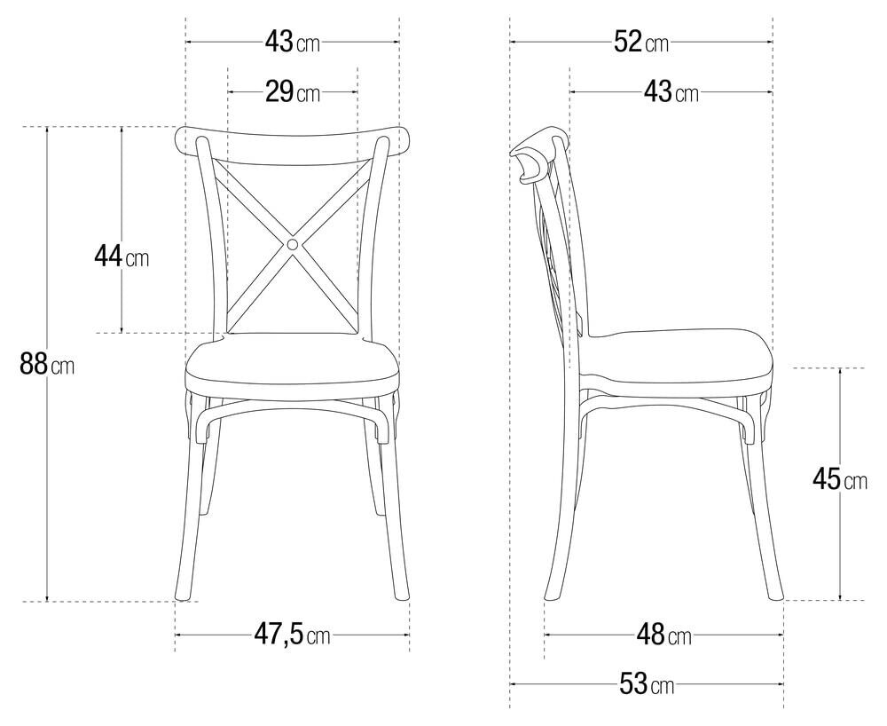 Le dimensioni della sedia sono 43 x 43 x 89 cm, rendendola adatta a diverse configurazioni di arredo. Nonostante la sua robustezza, la sedia ha un peso contenuto di 4,83 kg, facilitando spostamenti e impilamento.